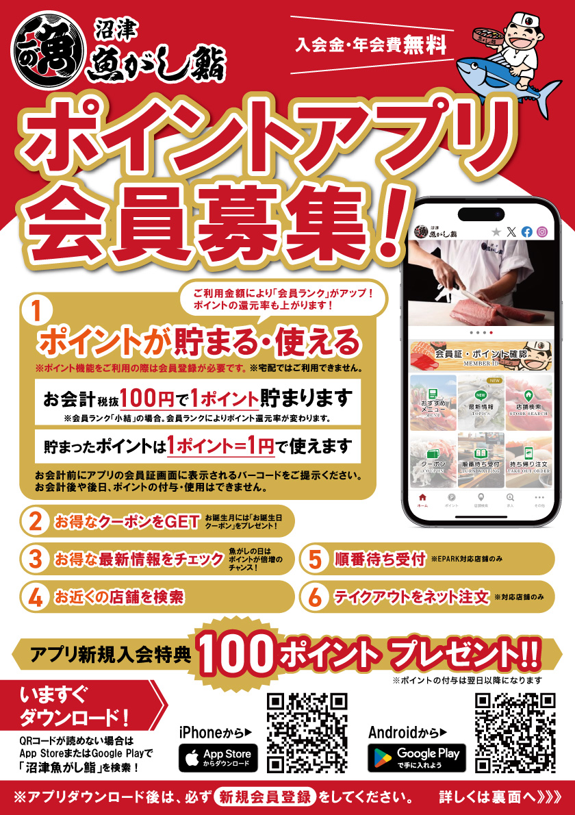 2024/08/22 - 【重要なお知らせ】「沼津魚がし鮨ポイントアプリ」アップデートのお知らせ