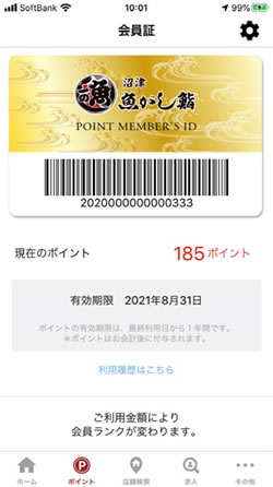 - 沼津魚がし鮨全店舗で利用可(※沼津魚がし丼を除く)