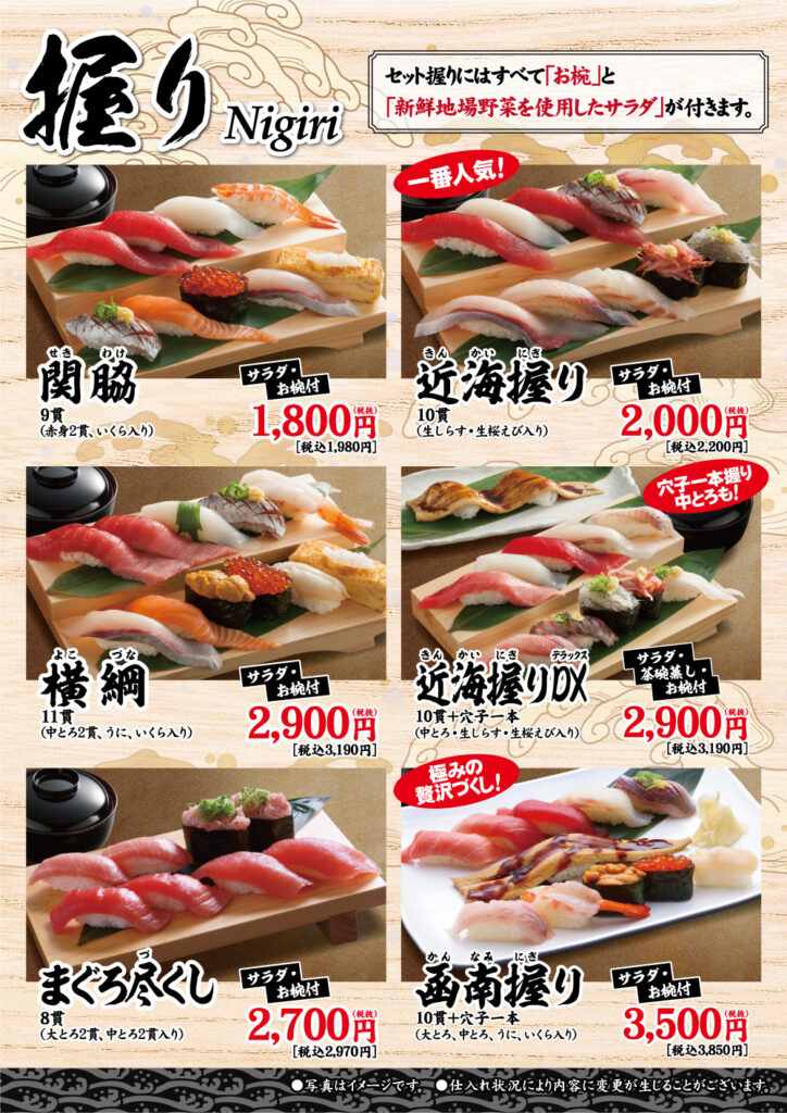 ※お鮨は全てサビ抜きです。わさびは別添えでのご提供となります。