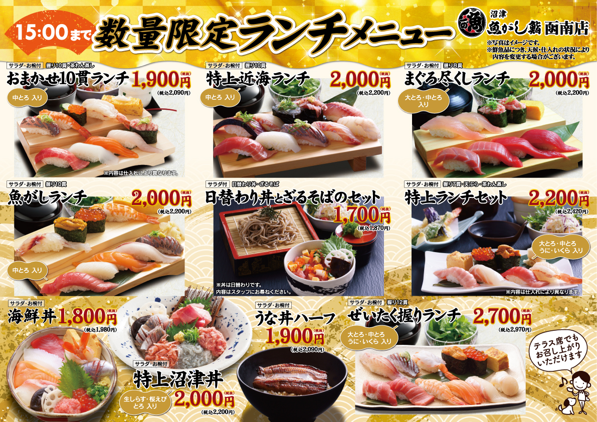 ※GW・お盆・年末年始等の繁忙期は限定メニューのみの取扱いとなります。詳しくは店舗にお問い合わせください。