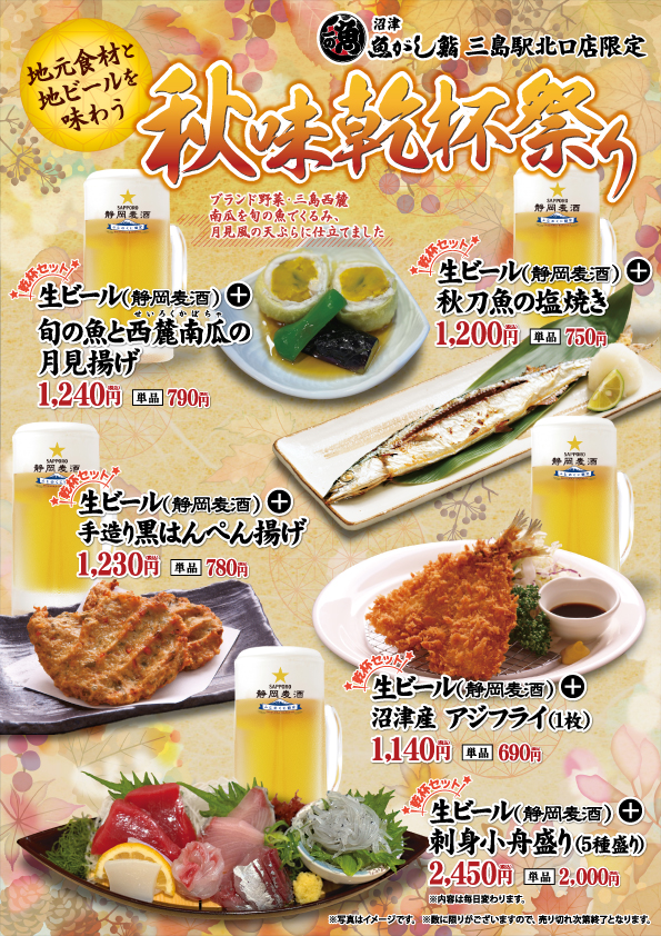 - 静岡麦酒生ビール(静岡麦酒) +旬の魚と西麓南瓜の月見揚げ 1,240円(税込)(単品790円)