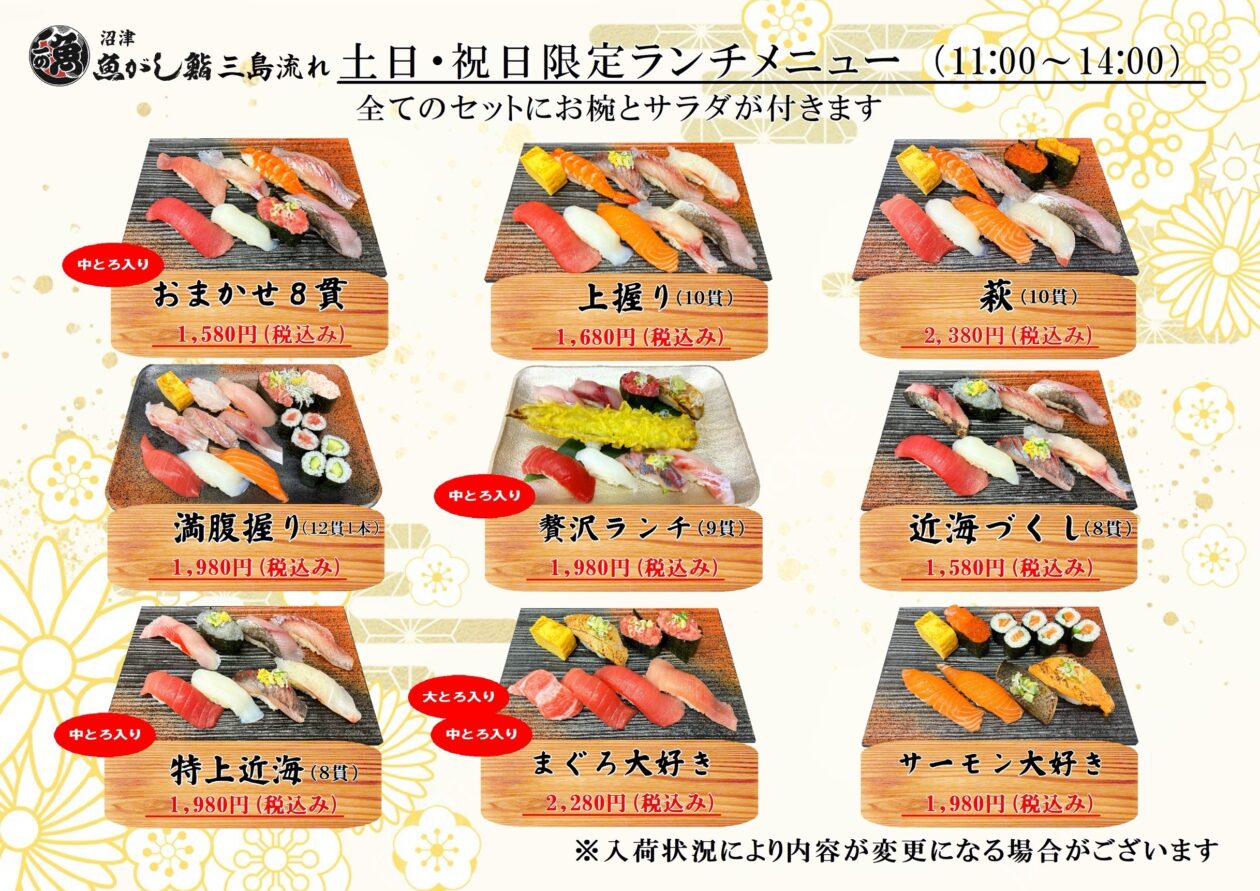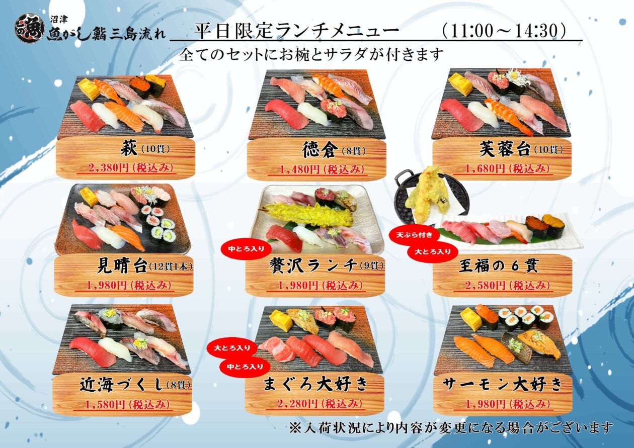 沼津魚がし鮨 流れ鮨 三島店をご利用いただきまして誠にありがとうございます。
