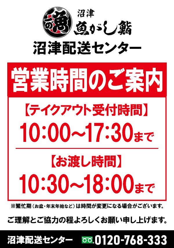 《ご注文先》沼津配送センター TEL:0120-768-333