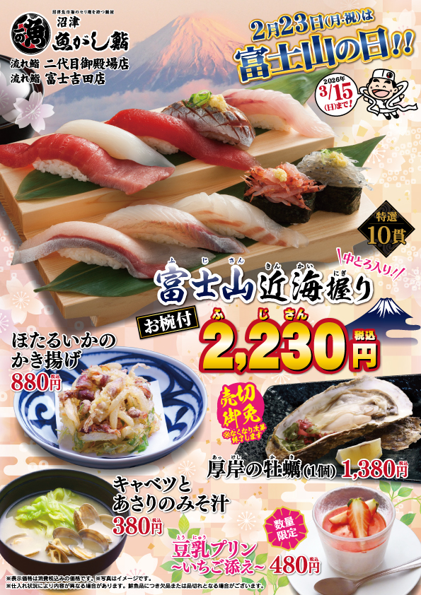 ・富士山近海握り〈中とろ入り〉お椀付 2,230円(税込)