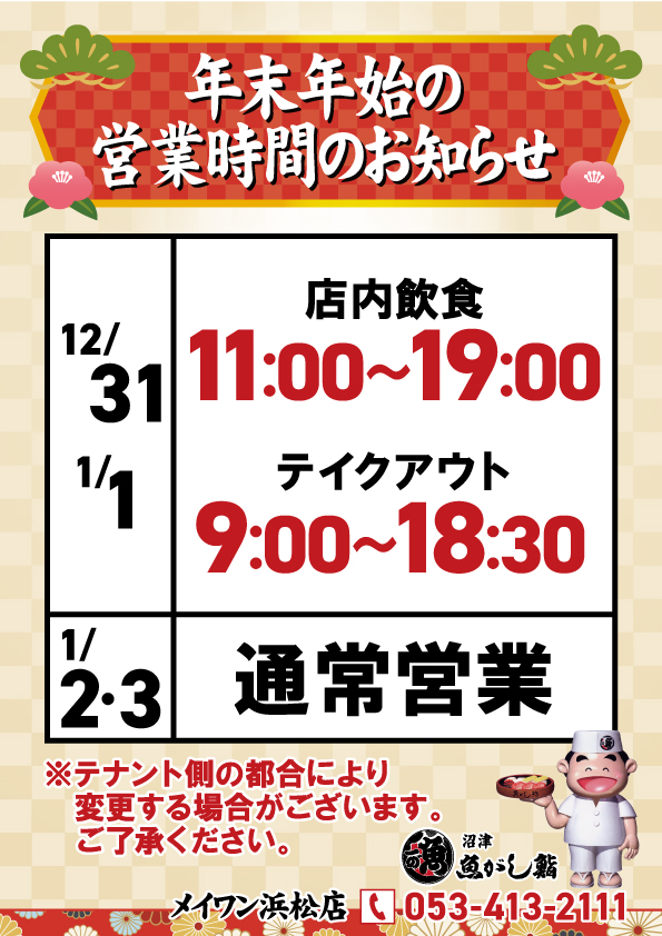 ※営業状況により予告なしで変更の場合がございます。 - 定休日