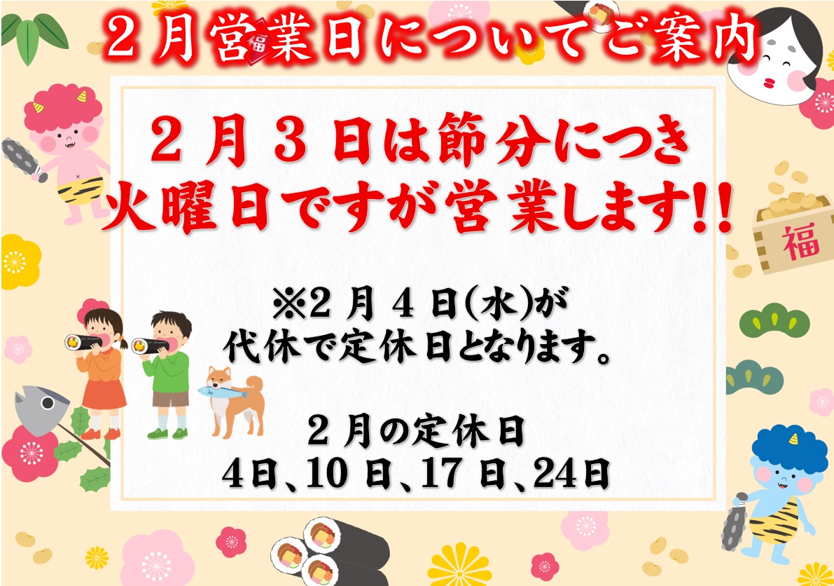 2月3日は恵方巻につき火曜日ですが営業いたします!